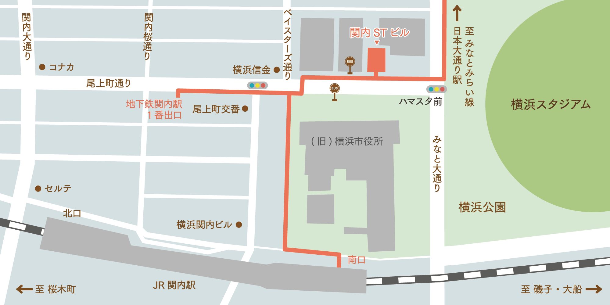 南口改札から出て、北方向へお進みください。 - 横浜市営地下鉄ブルーライン「関内」駅 徒歩3分