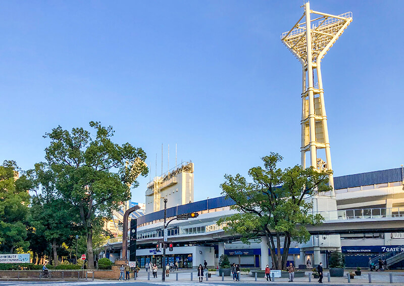 1番出口から出て、みなと大通りを南方向へお進みいただき、「ハマスタ前」交差点で右折してください。